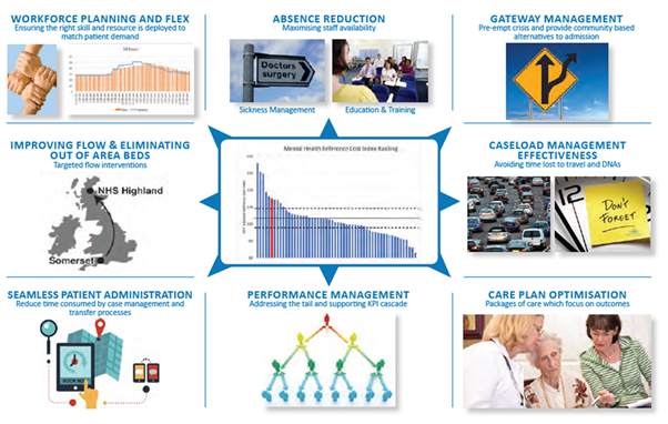 I have already touched on too much time lost to patient administration or poorly designed process; teams ‘holding’ service users & lack care packages focused on time limited interventions. The ‘wheel’ includes other items, that recurring are not the core competencies that they need to be deliver taxpayer value for money, such as workforce planning and flex; performance management and absence reduction.